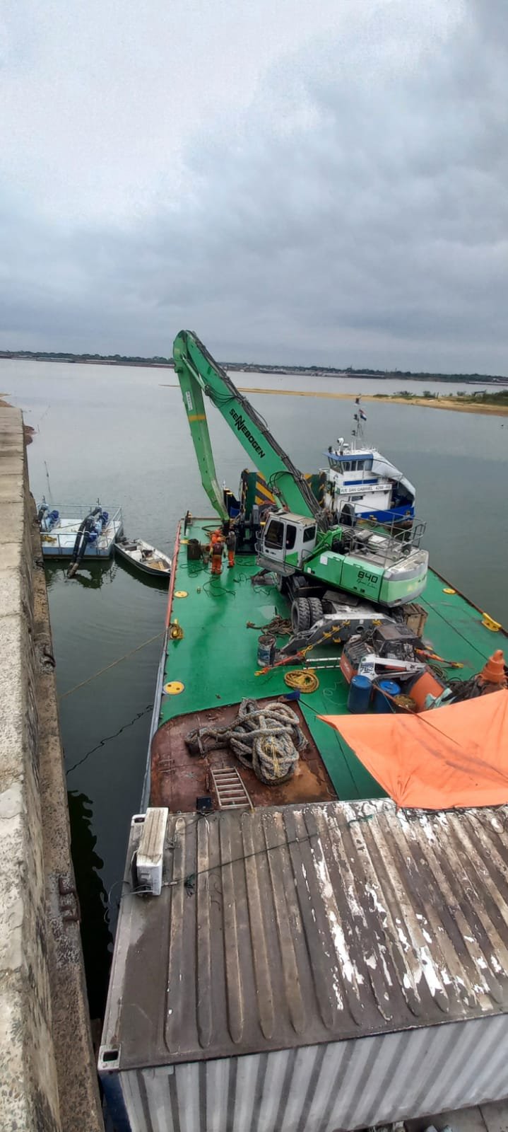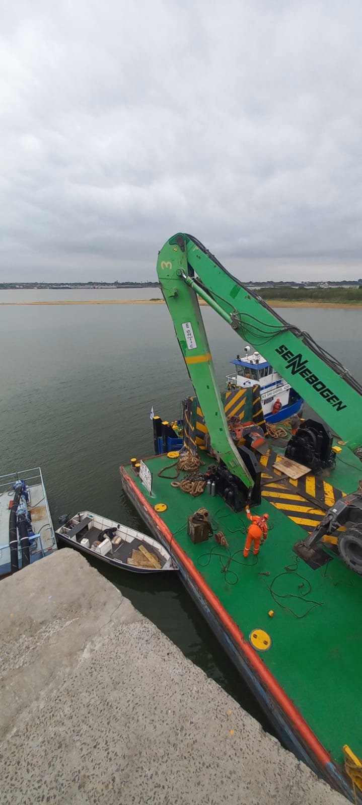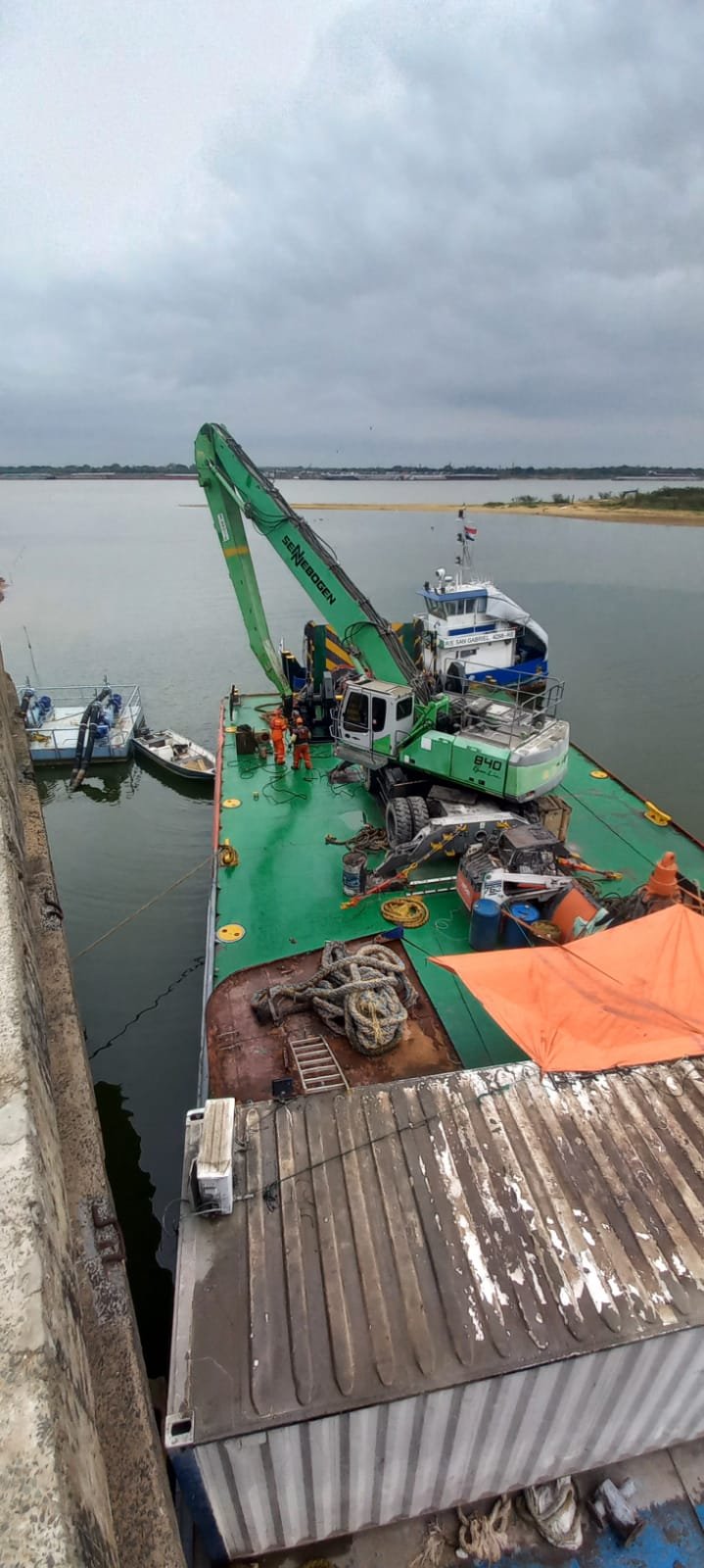 La operación se llevó adelante con buzos especializados de los empresa River Services al igual que las grúas flotantes y Remolcador Portuario de dicha firma lo que permitió que la operación se realizará con éxito.