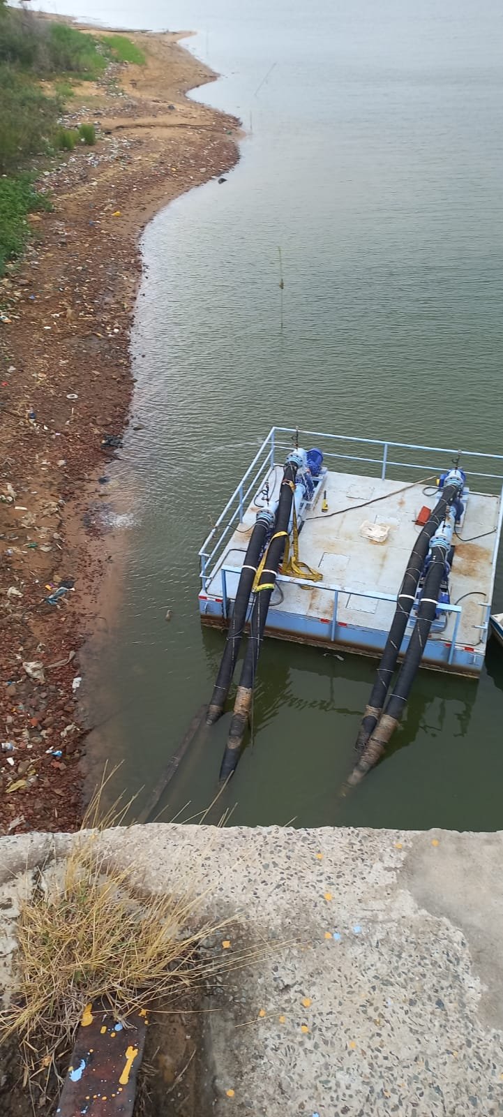 La Empresa de Servicios Sanitarios del Paraguay, ESSAP, procedió el día de hoy a la colocación de sistemas de bombas en el río Paraguay, con el fin de garantizar la provisión de agua debido a la extrema bajante del río Paraguay.